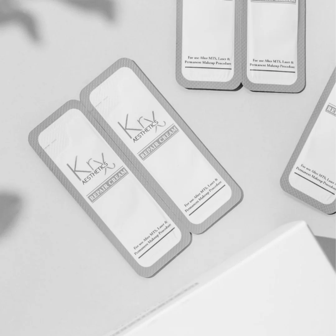 A paraben free post treatment repair cream that forms a protective barrier to support healing and provide 24 hour moisture. Individually packed sterile pouches with soothing botanicals including Centella Asiatica and Shea Butter. Ideal after microneedling, laser, or permanent makeup procedures.
